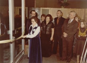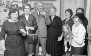 De opening van de eerste winkel in gaskachels in 1964. In het midden (met de zwarte jurk) mijn oma. Ik ben de baby in de armen van mijn moeder.