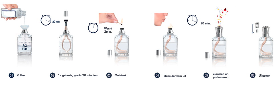 De branders werken door middel van katalytische verbranding, de steen wordt warm gehouden zonder vlam. Dit unieke proces doodt bacteriën en micro-organismes en voorkomt slechte geuren terwijl tegelijkertijd een heerlijke parfum wordt verspreid. De oorsprong van dit systeem komt uit Frankrijk waar in de 19e eeuw dit al werd toegepast in ziekenhuizen om de vieze geuren te elimineren.
